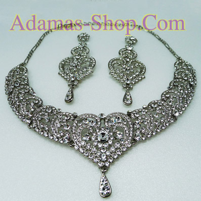 เซ็ตเครื่องประดับ - ชุดเครื่องประดับ คริสตัล อินเดียสีขาว ชุดหัวใจ ชุด 3 ชิ้น ส่ง EMS ฟรีทั่วไทย