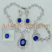 เซ็ตเครื่องประดับ - ชุดเครื่องประดับ พลอยสีน้ำเงินและขาว ชุดรอยัลสีน้ำเงิน ครบชุด5ชิ้น ส่งEMSฟรีทั่วไทย