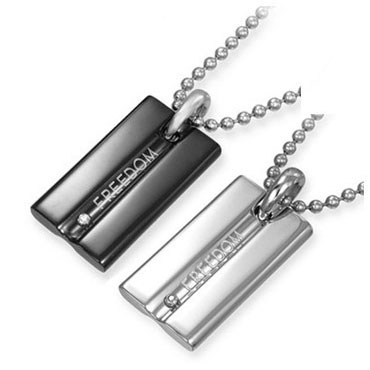 NT713 จี้พร้อมสร้อยฝังเพชร เกรด AAA Freedom Black & Steel Pendant CZ
