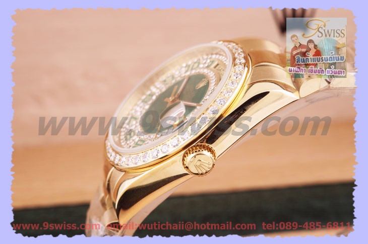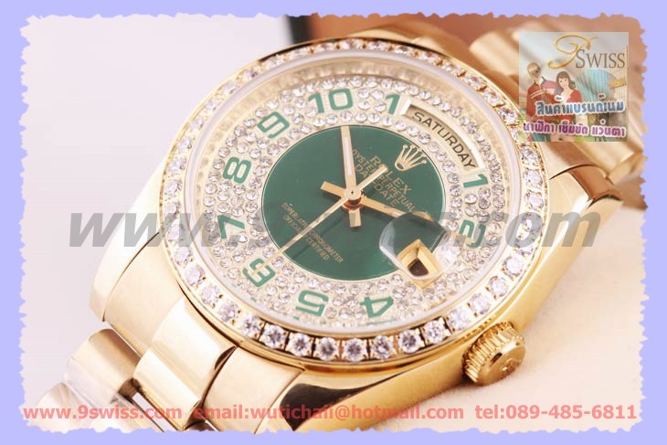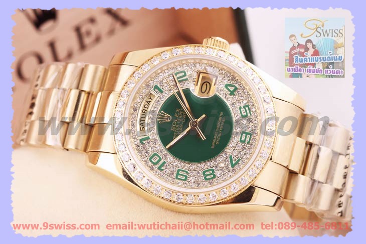 ROLEX Day-Date Green and Diamonds Dial/Bazel(36 mm)President:Yellow Gold นาฬิกาแห่งอัญมณี หลากหลายด้วยเพชรมาตกแต่งประดับประดา สวยสดใส เกรดมิเรอร์อิมเมจ ราคาถูกเว่อๆจร้า ด่วนสินค้าจำนวนจำกัด