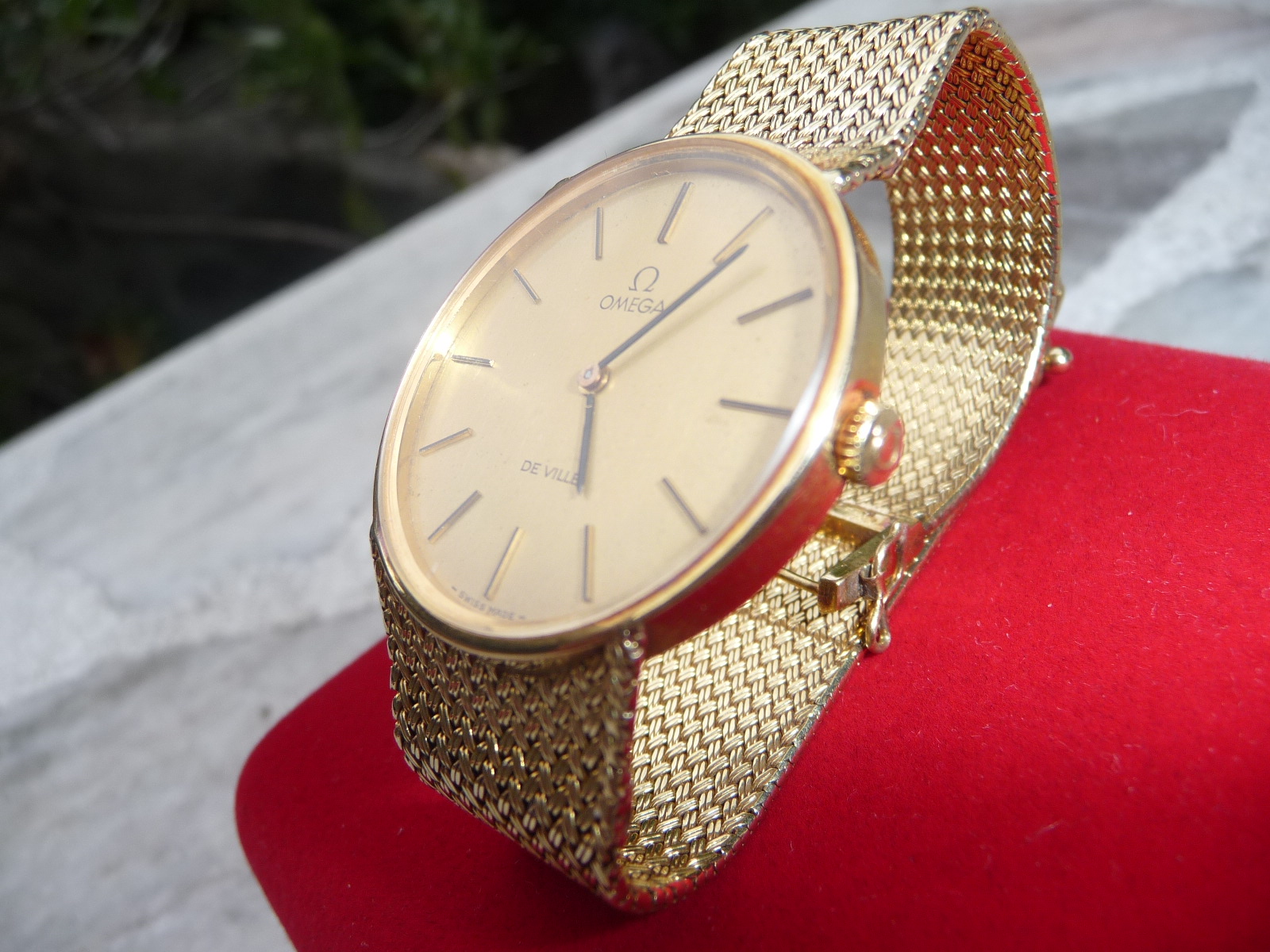ขายโอเมก้าทองคำ เครื่อง Manual สายทองคำ 18k ถักปราณีต สวยงามมากๆ นับเป็นงานศิลปะโบราณ บนข้อมือ ที่สวยสุดคลาสสิคอย่างแท้จริง