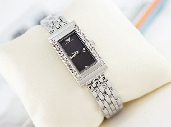 นาฬิกา Armani งาน AAA สายเลสสีบรอนซ์เงิน ตัวเรือนสีบรอนซ์เงิน ประดับเพชรสวยงาม ขนาดตัวเรือน 18x30 mm. สายยาว 18.5 cm. ปั๊มโลโก้ที่ฝาหลังค่ะ