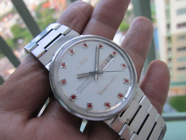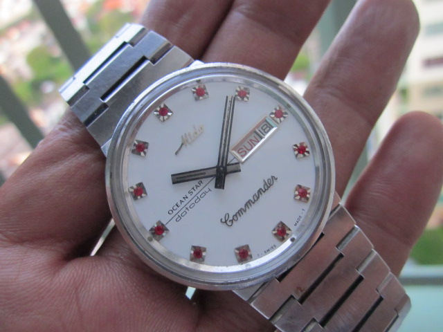 Mido Commander ระบบออโต้ หน้าปัดขาวพลอยแดง ขนาด 37 มม.เม็ดมะยมสองจังหวะเพื่อตั้งสัปดาห์และวันที่แบบเร็ว พร้อมสายสแตนเลสสตีล เดินดีพร้อมใช้ เสนอที่ 2550 พร้อมส่งฟรี EMS ถึงบ้าน โทร.0880147622 หมี ธ.กสิกร 6362199369 กรวิชญ์ สงวนบุญสุข