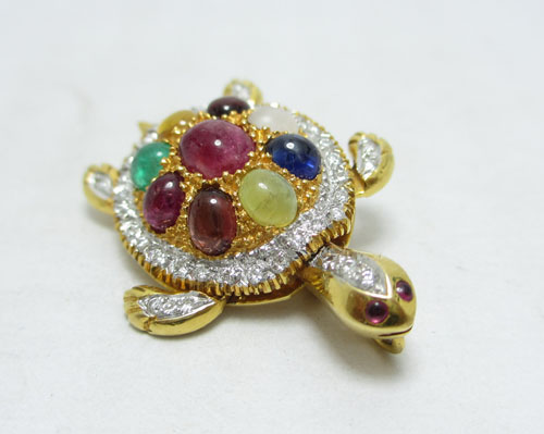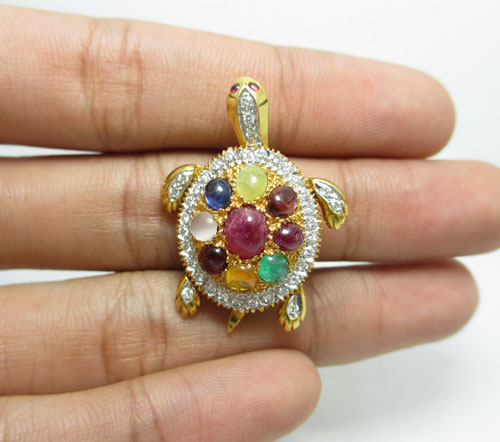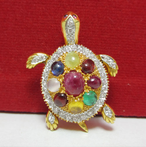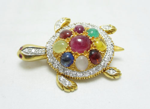 จี้+เข็มกลัด นพเก้า ฝังเพชร ลายเต่า นน.7.72 g