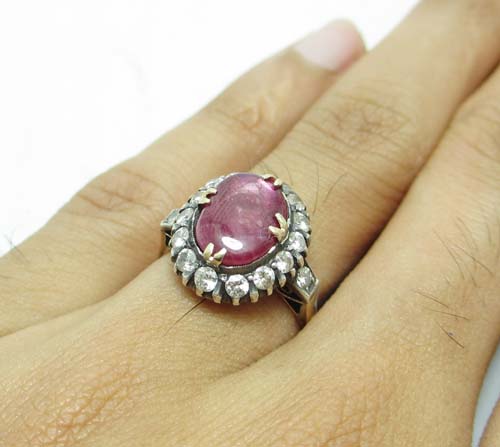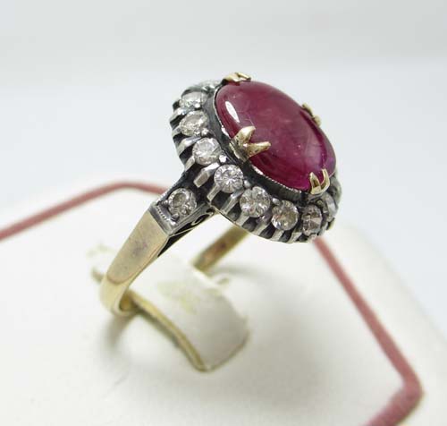 แหวน ทับทิม ล้อมเพชร งาน K 2สี นน.3.27 g