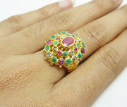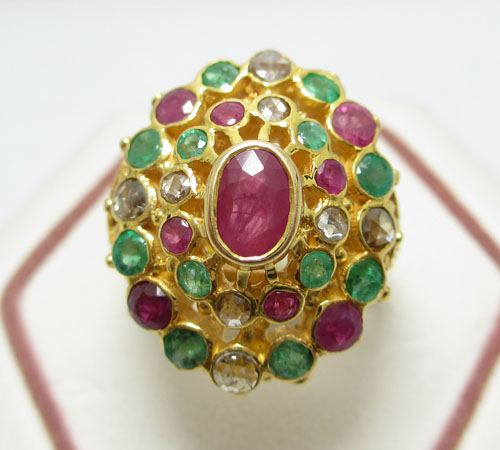 แหวนฉลุลาย ทับทิมพม่า มรกต เพชรซีก นน. . 10.90 g