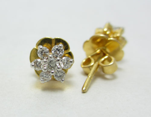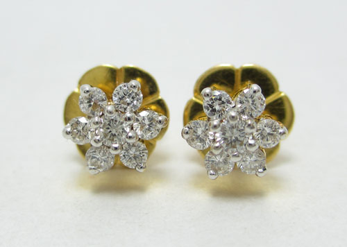 ต่างหูเพชรกระจุกดอกพิกุล ทรงยอดฮิต เพชรทั้งหมด 14 เม็ด น้ำหนักโดยประมาณ 0.35 กะรัต