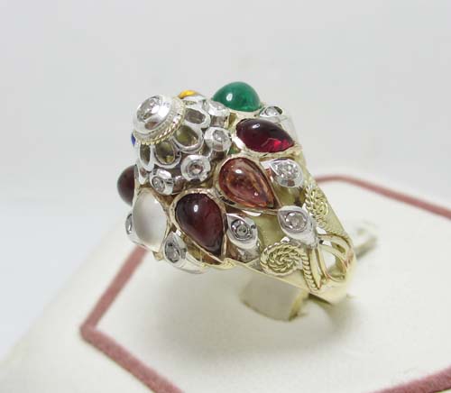 แหวนนพเก้า ตัวเรือนน้ำหนักโดยประมาณ 5.23 กรัม (ชั่งทั้งชิ้นงาน) พลอยแท้ ความกว้างโดยประมาณ 1.0 เซ็นติเมตร งานทอง K size 54