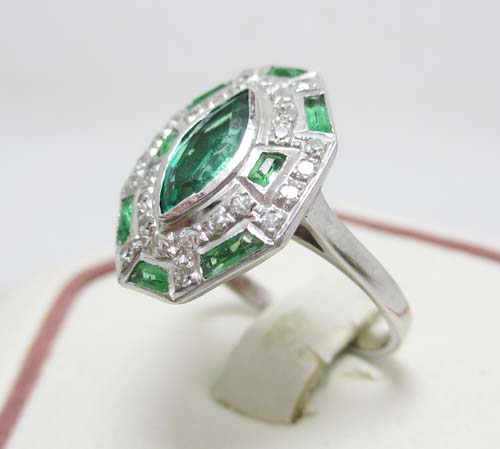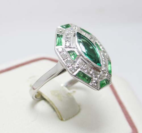 แหวนมรกต มาคีย์ ฝังเพชร งานเก่า นน.3.77 g