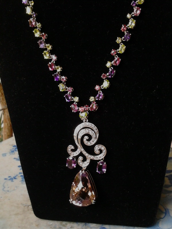 พลอยเม็ดใหญ่ อเมทรีน ตัวสร้อย เพอริดอท อเมทิส รูบิไลท์ ตัวเรือนเงินชุบทองขาว