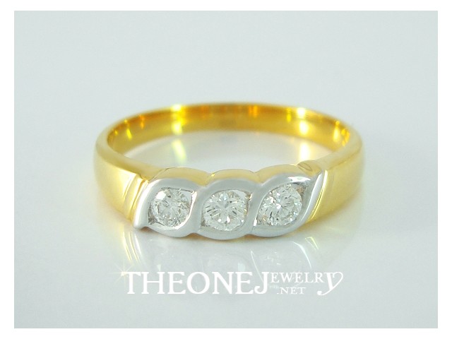 แหวนเพชรเบลเยี่ยมคัท เพชรแถวตาม้า เพชร 3 เม็ด น้ำหนักเพชรรวม 0.22 กะรัต Color 97