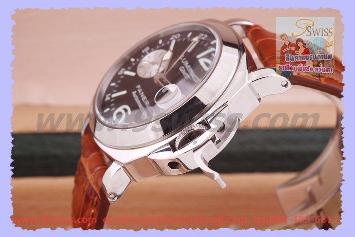 PANERAI Luminor GMT 44 mm.(PAM088)Steel:Leather ระบบตั้งเวลาสากล กับงานเกรดมิเรอร์อิมเมจ