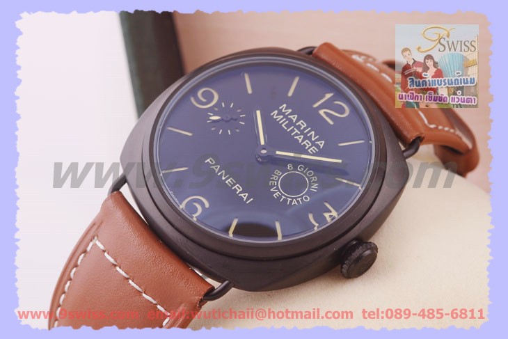 PANERAI Marina Militare 44 mm.(PAM339)ต้นฉบับนาฬิกาทางการทหาร กับ Marina Militare แนว Vintage สุดคลาสสิค กับงานเกรดมิเรอร์บอดี้สวิส รูปสุดท้ายเปรียบเทียบของแท้ครับ - ขนาดตัวเรือน KingSize 44mm. เกรดมิเรอร์บอดี้สวิส ถอดบล๊อกจากของแท้ 1:1 - หน้าปัดสีดำ แบบแซนวิชสองชั้น เข็มและตำแหน่งเวลาเป็นพรายน้ำ - กระจก Crytral Sapphire กันรอยขีดข่วน ตัวเรือนเป็นงานลงดำ Black-PVD แข็งแรงทนทาน - สายหนังแท้ลายจระเข้มีสีดำ,น้ำตาล ให้เลือก ตัวล๊อคสายแบบเข็มขัด กระชับแน่นหนา สลักโลโก้คมชัด - ฝาหลังโชว์กลไกการทำงาน ฝาขันเกลียวใส่ซีลกันน้ำแน่นหนา เม็ดมะยมแบบหูกระทะครอบ - การทำงานระบบ Automatic Movement ความเที่ยงตรงสูง ขึ้นลานด้วยเฟืองเม็ดมะยม แสดงเวลาเป็นวินาทีตำแหน่ง 9 นาฬิกา " ถ้าต้องการ PANERAI Radiomir Composite Marina Militare 44 mm.(PAM339)PVD งานมิเรอร์สวิส เครื่องสวิสแท้ สามารถติดต่อสอบถามได้ครับ "