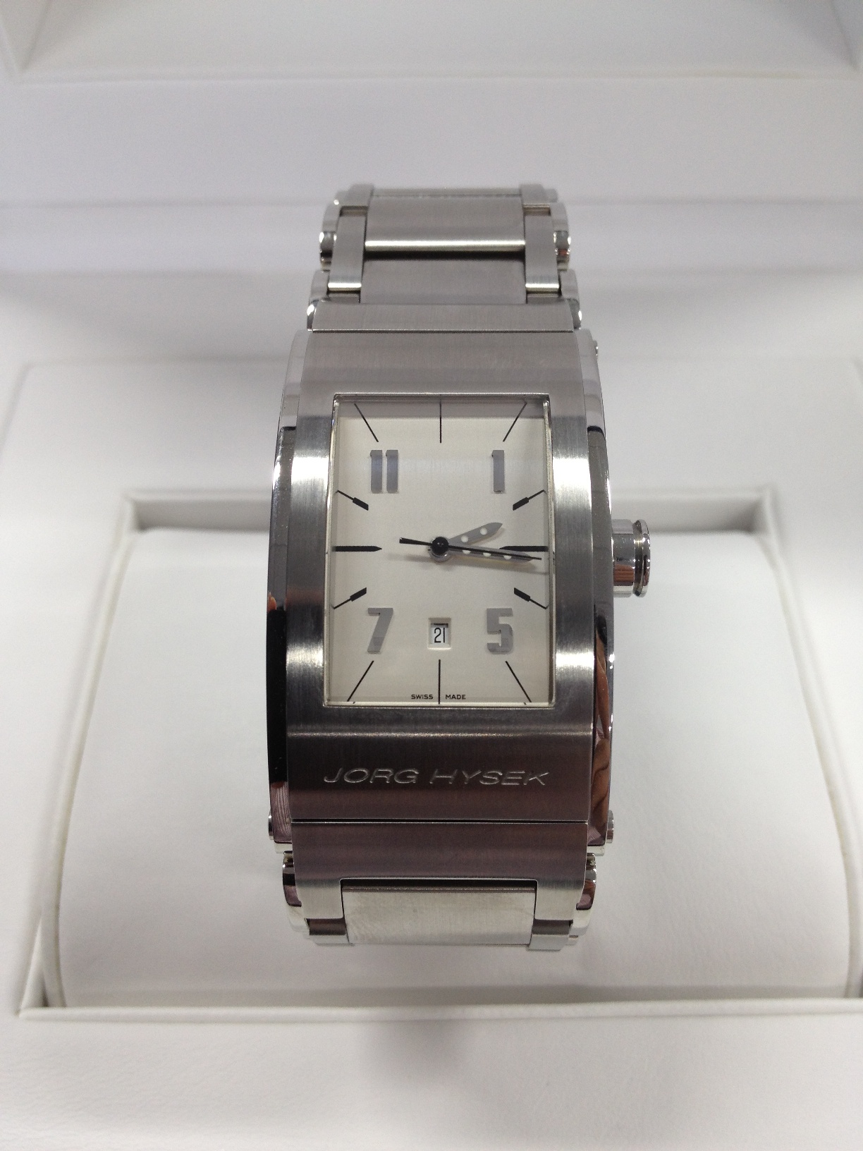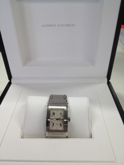 Jorg Hysek automatic for man, lady ขนาด medium size 27x47mm. หน้าปัดขาวประดับหลักเวลาอารบิคสลับขีด