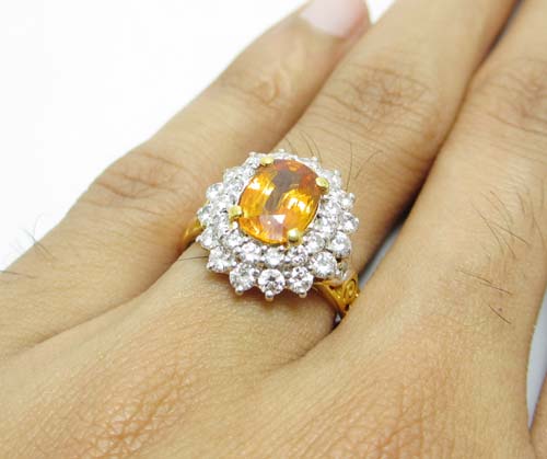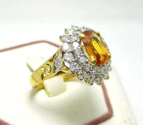 แหวนบุษราคัมล้อมเพชร 2 ชั้น หลุดจำนำ นน.6.45 g
