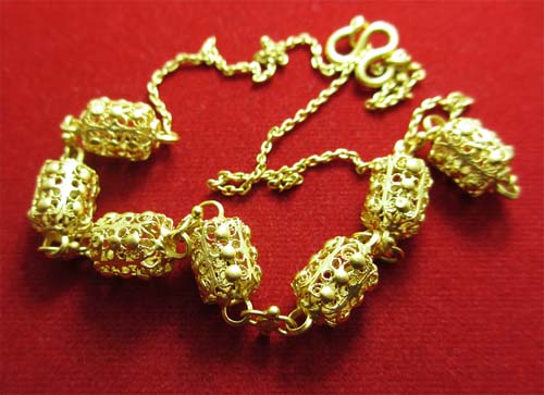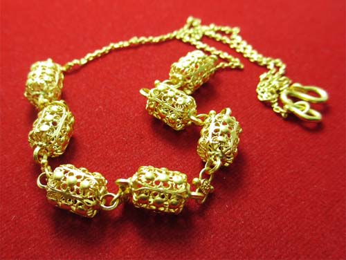 สร้อยคอ เม็ดทอง 100% งาน ลายปะวะหล่ำ ทองโบราณ %%% งานลาย ทองโบราณ %%% !!!!! ชิ้นนี้สวยมาก !!!!! ทองแท้น้ำหนักรวม 15.54 กรัม (ชั่งน้ำหนักรวมทั้งชิ้น) ขนาดยาว 16 นิ้ว หมายเหตุ 1.น้ำหนักที่ระบุเป็นน้ำหนักของตัวเรือนรวมน้ำหนักของพลอยหรือเพชรแล้ว อาจมีการ เปลี่ยนแปลงในกรณีที่เป็นแหวนแล้วมีการเปลี่ยนแปลงขนาด 2.น้ำหนัก เพชรที่ระบุ เป็นน้ำหนักเพชรโดยประมาณ เพราะสินค้าเป็นสินค้าหลุดจำนำไม่สามารถนำมาชั่งโดยละเอียดได้ (ยกเว้นสินค้าบางชิ้นที่ระบุไว้ชัดเจนว่าน้ำหนักผ่านการชั่ง) การเลือกซื้อ และการประเมินคุณค่า เครื่องประดับโบราณ เรา พิจารณาจากความ ประณีต สวยงาม รูปแบบที่แปลกตา หายาก และความสมบูรณ์ของชิ้นงานประกอบกับ ชนิด ขนาด จำนวน และคุณภาพของเพชรพลอยในชิ้นงาน โดยไม่ได้ให้ความสำคัญกับชนิดของโลหะมีค่า ที่ประกอบเป็นตัวเรือนแต่อย่างใด องโลหะมีค่า ที่ประกอบเป็นตัวเรือนแต่อย่างใด น้ำหนัก : 1554 กรัม