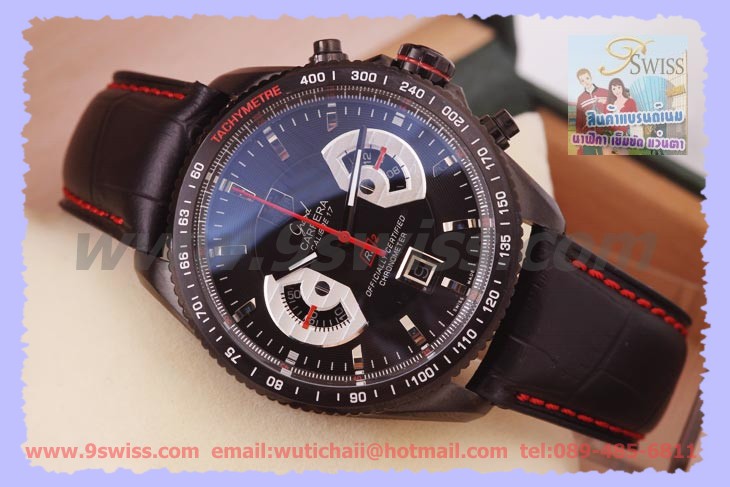 * TAG Grand Carrera Cal.17 Chonograph นาฬิกาจับเวลา ออกแบบโดย GT Race Car Engine งานมิเรอร์บอดี้สวิส รูปสุดท้ายเปรียบเทียบของแท้ - ขนาดตัวเรือน King Size 43 mm. เกรดมิเรอร์บอดี้สวิส ถอดบล๊อกจากของแท้ 1:1 - หน้าปัดสีดำลายวงกลม โทนสีดำ-แดง ขอบหน้าปัดสลักเลข Tachymetre คมชัด - กระจก Crytral Sapphire กันรอยขีดข่วน เคลือบสาร Anti-Refection ช่วยลดแสงสะท้อน - เข็มและตำแหน่งเวลาเป็นพรายน้ำและแบบส่องสะท้อน - ตัวเรือนเป็นงานลงดำ Black-PVD สายหนังแท้ลายจระเข้ ตัวล๊อคสาย Spring Lock กระชับแน่นหนา สลักโลโก้คมชัด - ฝาหลังแสดงชื่อรุ่นและรายละเอียดต่างๆ ฝายึดน๊อตใส่ซีลกันน้ำแน่นหนา เม็ดมะยมขันเกลียวกันน้ำทุกเม็ด - การทำงานระบบ Quartz Chronograph Movement จับเวลาได้จริง ระบบ Fly Back ความเที่ยงตรงสูงสุด - แสดงวันที่ตำแหน่ง 6 นาฬิกา, แสดงการจับเวลาเป็นชั่วโมงตำแหน่ง 3 นาฬิกา, แสดงการจับเวลาเป็นนาทีตำแหน่ง 9 นาฬิกา - ปุ่มด้านบนควบคุมการเริ่มจับ-หยุดเวลา ปุ่มกลางตั้งวันที่และเวลา ปุ่มด้านล่างสำหรับรีเซ็ตเข็มจับเวลา(Fly Back) " ถ้าต้องการ TAG Grand Carrera Cal.17 Chonograph(43 mm.)Black-PVD งานมิเรอร์สวิส เครื่องสวิสแท้ สามารถติดต่อสอบถามได้ครับ "