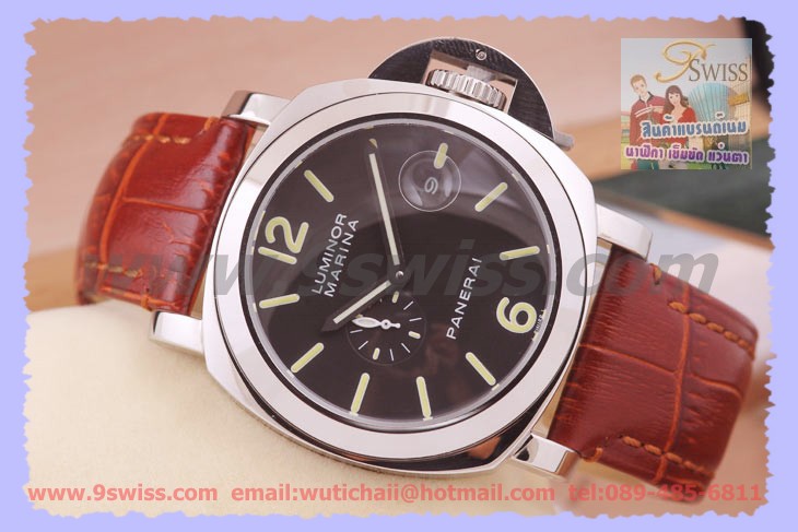 * PANERAI Luminor Marina 40 mm.(PAM104) นาฬิการุ่นยอดนิยม ดารานักแสดงใส่แยะมากๆ กับงานเกรดมิเรอร์อิมเมจ รูปสุดท้ายเปรียบเทียบของแท้ครับ - ขนาดตัวเรือน Large Size 44mm. /Small Size 40 mm. เกรดมิเรอร์บอดี้สวิส ถอดบล๊อกจากของแท้ 1:1 - หน้าปัดดำ ขอบหน้าปัดแสดงตำแหน่งเวลาในสไตล์ "Marina" เข็มและตำแหน่งเวลาเป็นพรายน้ำ - กระจก Crytral Sapphire กันรอยขีดข่วน ตัวเรือน Steel 316L แข็งแรงทนทาน - สายหนังแท้ลายจระเข้มีให้เลือกกว่า 10 สี ตัวล๊อคสาย Size 44mm.แบบเข็มขัดและแบบคลิบล๊อค/Size 40 mm. แบบคลิบล๊อค - ฝาสลักโลโก้และรายละเอียดต่างๆ ฝาขันเกลียวใส่ซีลกันน้ำแน่นหนา เม็ดมะยมแบบหูกระทะครอบ - การทำงานระบบ Automatic Movement ความเที่ยงตรงสูง ขึ้นลานด้วยโรเตอร์และเฟืองเม็ดมะยม แสดงเวลาเป็นวินาทีตำแหน่ง 9 นาฬิกา, แสดงวันที่ตำแหน่ง 3 นาฬิกา " ถ้าต้องการ PANERAI Luminor Marina Automatic 44 mm.(PAM104)Steel:Leather งานมิเรอร์สวิส เครื่องสวิสแท้ จับเวลาได้จริง สามารถติดต่อสอบถามได้ครับ "