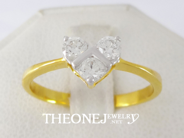 แหวนเพชรเบลเยี่ยมคัท ดีไซน์หัวใจ เพชร 3 เม็ด