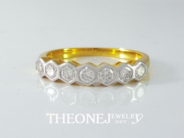 แหวนเพชรเบลเยี่ยมคัท เพชรแถว 7 เม็ด น้ำหนักเพชรรวม 0.34 กะรัต Color 97