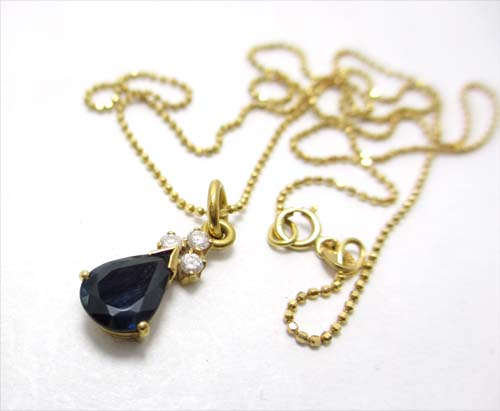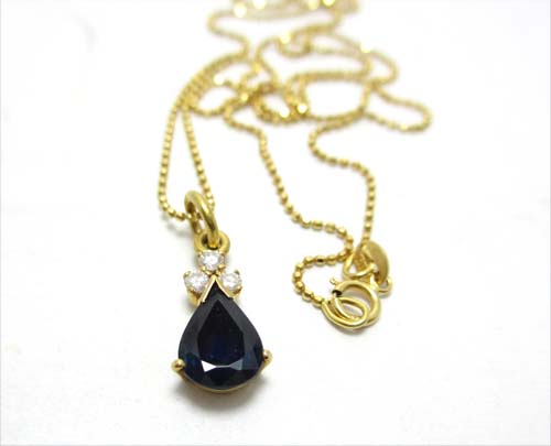 สร้อยคอ + จี้ ไพลินฝังเพชร พร้อมสร้อยคออิตาลี 750 นน 2.84 g