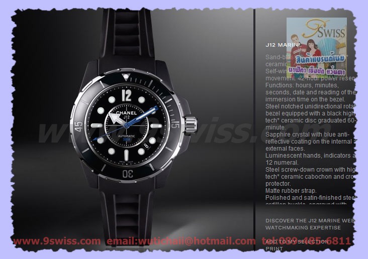 * CHANEL J12 Marine นาฬิกานำด้ำ แนวสปอร์ต มีไซด์ทั้งชาย และหญิง กับงานเกรดสวิสเซรามิคแท้ รูปสุดท้ายเปรียบเทียบของแท้ครับ - ขนาดตัวเรือน King Size 38 mm. / Lady Size 33 mm. เกรดมิเรอร์สวิส ถอดบล๊อกจากของแท้ 1:1 - หน้าปัดสีดำ เข็มและตำแหน่งเวลาเป็นพรายน้ำ กระจก Sapphire กันรอยขีดข่วน เคลือบสาร Anti-Reflection ลดแสงสะท้อน - ขอบสี White Gold 18K ขอบหน้าปัดสามารถหมุนเพื่อตั้งเวลาได้ (เฟืองหมุนขอบหน้าปัดด้านใน เป็นเฟืองเหล็ก แข็งแรงมาก) - ตัวเรือนทำจาก "เซรามิคแท้สีดำ" (ไม่ใช่งานพลาสติกนะครับ) สายยางคัดเกรดพิเศษ ผสมกลิ่นหอมช่วยลดกลิ่นเหม็นอับ - ฝาหลังขัดเรียบ ไม่ละคายเคืองข้อมือ ยิงเลเซอร์บอกรายละเอียดเหมือนแท้ ฝายึดน๊อตใส่ซีลกันน้ำแน่นหนา เม็ดมะยมขันเกลียวกันน้ำ - การทำงานระบบ Quartz Movement ความเที่ยงตรงสูงสุด แสดงวันที่ ตำแหน่ง 4-5 นาฬิกา