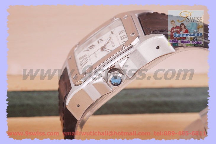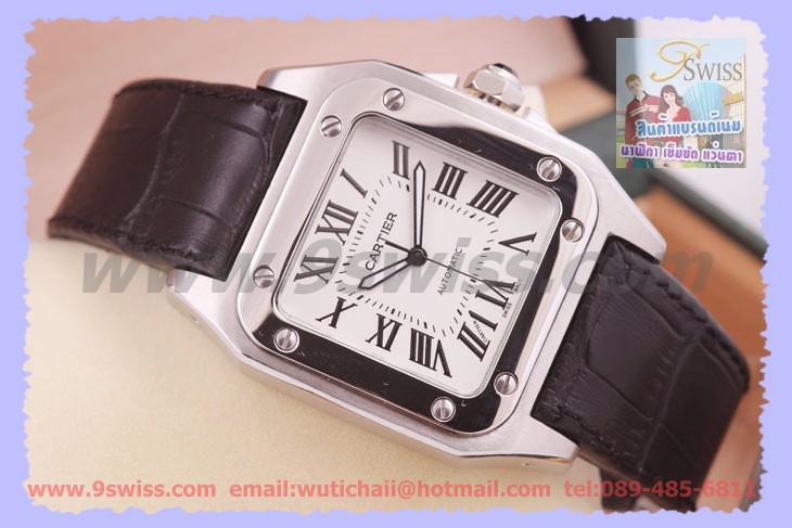 * Cartier Santos 100 REF:w20106X8 กับงานมิเรอร์อิมเมจ เครื่อง Asia Movement มีให้เลือก แบบ Meduim และ Small Size รูปสุดท้ายเปรียบเทียบของแท้ครับ - ขนาดตัวเรือน Meduim Size 44.2x35.6 mm. Small Size 28.25x22.65 mm.เกรดมิเรอร์อิมเมจ ถอดบล๊อกจากของแท้ 1:1 *(ตัวเรือน Small Size ของเราจะเป็นระบบ Quartz Movement ตัวสายหนังแท้ลายจระเข้แบบหัวเข็มขัดครับ) - หน้าปัด Silvered Opaline Dial ตัวเลขโรมัน เข็มเวลาเป็นแบบพรายน้ำ - กระจก Crytral Sapphire กันรอยขีดข่วน ขอบหน้าปัดแบบยึดน๊อตบล๊อคกระจก - ตัวเรือนทำจาก Steel แข็งแรงทนทาน สายหนังแท้ลายจระเข้ มีสีดำและสีน้ำตาลให้เลือก ข้อล๊อคแบบ Twin Lock - ฝาหลังทึบสลักโลโก้เหมือนแท้ ขันเกลียวใส่ซีลกันน้ำ เม็ดมะยมปั้มโลโก้เหมือนแท้ - การทำงานระบบ Automatic Movement ความเที่ยงตรงสูง ขึ้นลานด้วยโรเตอร์และเฟืองเม็ดมะยม " ถ้าต้องการ CARTIER Santos 100 Automatic (44.2x35.6 mm.)Steel งานมิเรอร์สวิส เครื่องสวิสแท้ หน้าปัดเลขโรมันตรงเป๊ํะๆ สามารถติดต่อสอบถามได้ครับ "