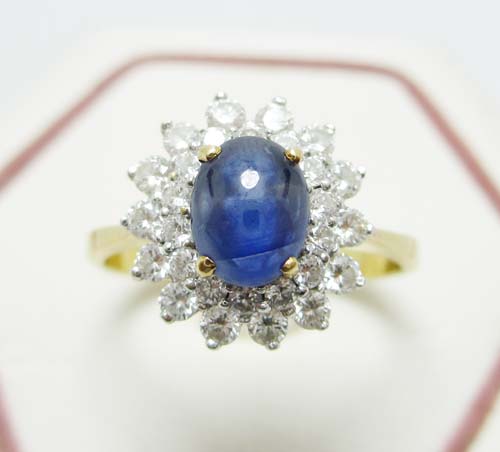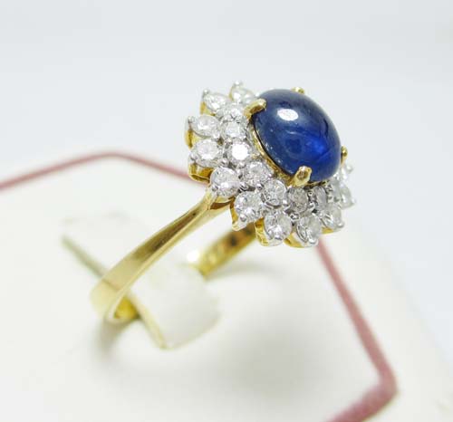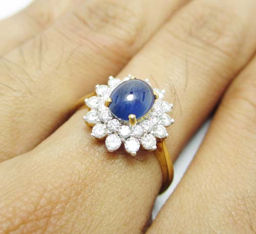 แหวนไพลิน หลังเบี้ย ฝังเพชร 2 ชั้น นน.4.13 g