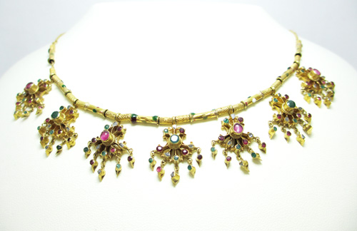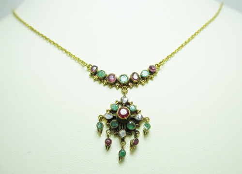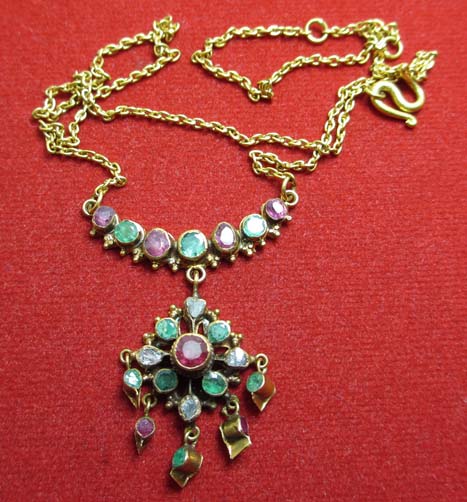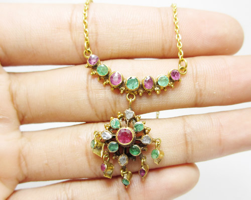 สร้อยคอ พลอย 3 สี ตุ้งติ้ง ทอง90% นน.7.20 g
