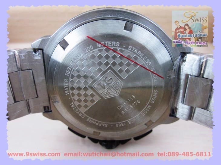 * TAG Formula 1 Chronograph Black Dial นาฬิกาจับเวลาแนวสปอร์ต Version 2011 งานมิเรอร์สวิส รูปสุดท้ายเปรียบเทียบของแท้ - ขนาดตัวเรือน King Size 41 mm. เกรดมิเรอร์สวิส (TOP HIGHEST)ถอดบล๊อกจากของแท้ 1:1 - หน้าปัดสีดำ ขอบหน้าปัดแบบ 60 Minute Scale สามารถหมุนตั้งปรับเวลาได้ (เข็มยาวสีแดงเป็นเข็มจับเวลา) - กระจก Crytral Sapphire กันรอยขีดข่วน เข็มและตำแหน่งเวลาเป็นพรายน้ำและแบบส่องสะท้อน - ตัวเรือนและสายทำจาก Steel 316L แข็งแรงทนทาน สายล๊อค Double Lock กระชับแน่นหนา - ฝาหลังแสดงชื่อรุ่นและรายละเอียดต่างๆ ฝาขันเกลียวใส่ซีลกันน้ำแน่นหนา เม็ดมะยมขันเกลียวกันน้ำ - การทำงานระบบ Quartz Chronograph Movement จับเวลาได้จริง ความเที่ยงตรงสูงสุด (ของแท้ก็ระบบ Quartz ครับ) -- แสดงวันที่ตำแหน่ง 3-4 นาฬิกา, แสดงเวลาเป็นวินาทีปกติตำแหน่ง 2 นาฬิกา, แสดงการจับเวลาเป็นนาทีตำแหน่ง 10 นาฬิกา (เหมือนแท้ 95%) - ปุ่มด้านบนควบคุมการเริ่มจับ-หยุดเวลา ปุ่มกลางตั้งวันที่และเวลา ปุ่มด้านล่างสำหรับรีเซ็ตเข็มจับเวลา(Fly Back)