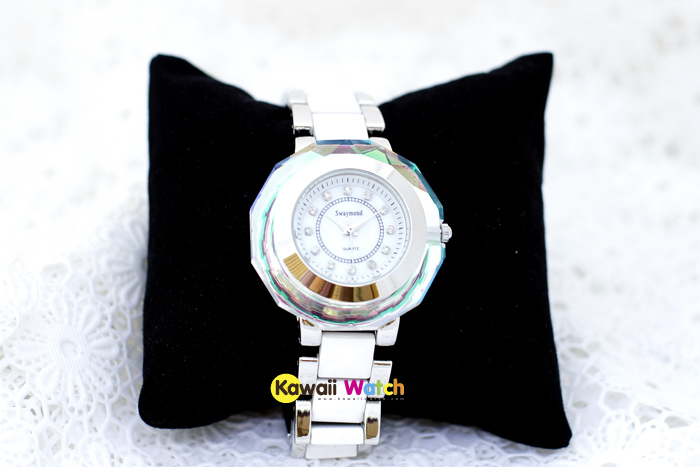 นาฬิกาข้อมือ Swaymond สายเหล็ก หน้าปัดขาวโดดเด่นตรงมีคริสตัลสีขาวรุ้งล้อมรอบหน้าปัด ทำให้นาฬิกาดูหรูหรา เงาวาว สะดุดตามากๆค่ะ