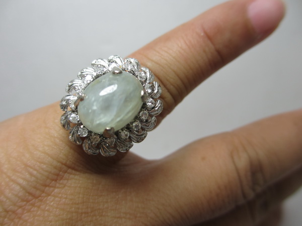 แหวนทับทิมขาว น้ำหนัก ประมาณ 6-7 กะรัต ล้อมเพชร ตัวเรือนทองขาวโบราณ (ปาหะ) หนักรวม 7.89 กรัม งานชิ้นนี้สวย ใหญ่เต็มตา ใส่เต็มนิ้ว รับรองคนทักแน่นอน (รับประกัน)