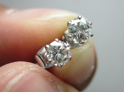 ต่างหู เพชร เดี่ยว เพชร 2 เม็ด นน. 0.65 ct.