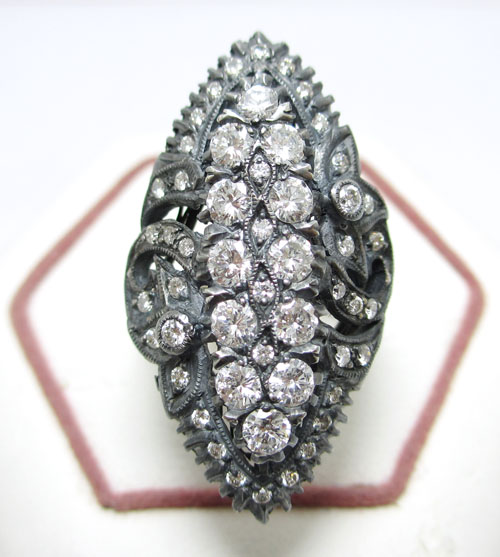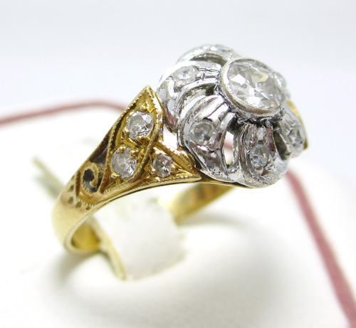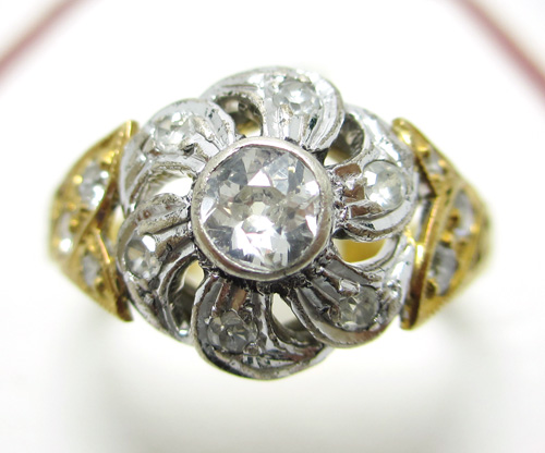 เพชรเกสรเหลี่ยมเก่า 1 เม็ดน้ำหนักโดยประมาณ 0.23 กะรัต ฝังเพชรรวม 12 เม็ด น้ำหนักรวมโดยประมาณ 0.18 กะรัต