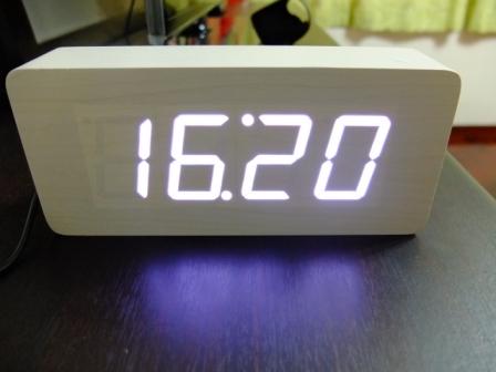 ขายนาฬิกา LCD ตั้งโต๊ะ ขนาด 6x4 นิ้ว ไม้ สีขาว พร้อมที่ชาร์ตไฟ และกล่อง สามารถตั้งเวลา วันที่ และตั้งปลุกได้