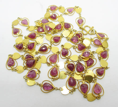 สร้อยคอ พลอย ทับทิม ลายหัวใจ งานทองเก่า สวยมาก นน.9.14 g