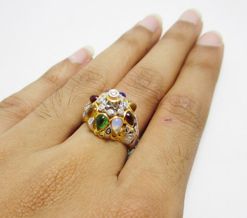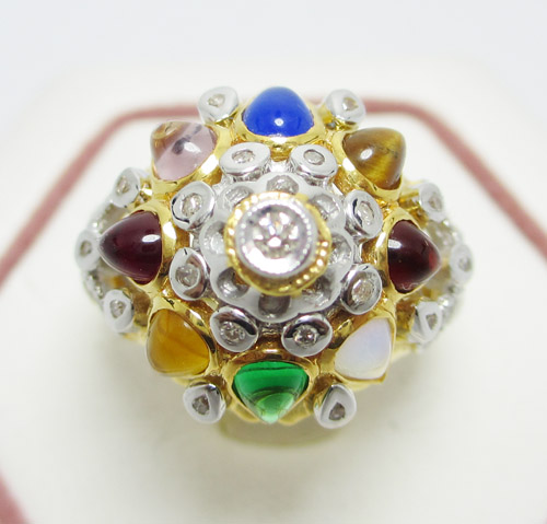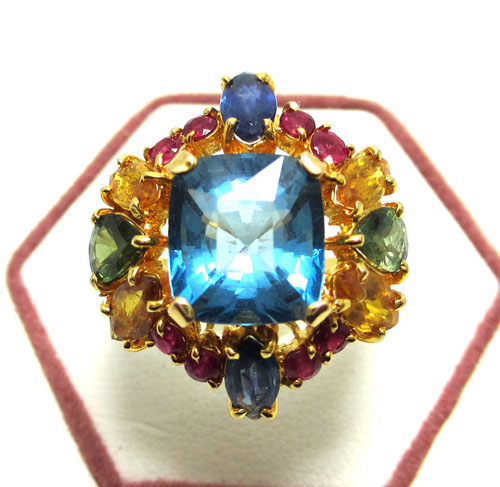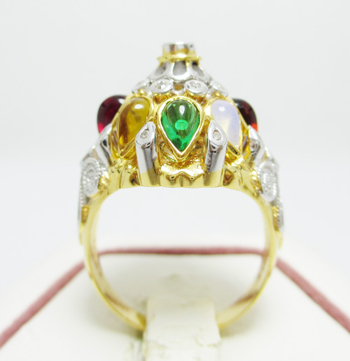 แหวนนพเก้า ตัวเรือนน้ำหนักโดยประมาณ 5.91 กรัม (ชั่งทั้งชิ้นงาน) พลอยแท้ ความกว้างโดยประมาณ 1.0 เซ็นติเมตร งานทอง K
