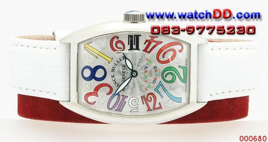 ขั้นตอนการสั่งแบบง่าย ๆ นะคะ 1. เข้าเลือกชมสินค้าที่เวป www.watchdd.com 2. เลือกยี่ห้อ ที่ท่านต้องการ ถ้ามีวงเล็บคำว่า(swiss) คือเกรดที่เหมือนของแท้ทุกอย่าง 3. ดูรหัสสินค้าที่ท่านต้องการ 4. โทรสั่งสินค้าได้ทันทีโดยแจ้งเฉพาะรหัสสินค้าคะ *** ด้วยชื่อเสียงมากกว่า 4 ปี ทางร้านจะไม่เอาเปรียบลูกค้าโดยการที่ลูกค้าสั่งเกรดสวิสแต่ทำการส่งเกรดญี่ปุ่น(ซึ่งราคาถูกกว่าไปให้) หากสั่งเป็นเกรดสวิสจะต้องเป็นเครื่องETA แท้ทุกตัว *** "เราขอบริการท่านด้วยความซื่อสัตย์และยุติธรรมคะ" FRANCK MULLER CRAZY HOURS Color Dream (ทรงถังเบียร์) เข็มสั้นสามารถกระโดดได้จริง รหัสสินค้า: 000680