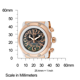 Wdth: 26 mm Bracelet Length: 9.0" Case Back: Screw Down Crown: Push/Pull Cabochon Subdials: 60 Second; 30 Minute