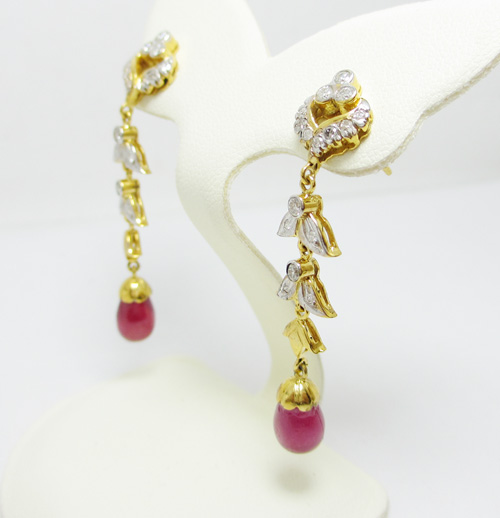 ต่างหู ทับทิม ระย้า ฝังเพชร นน.7.74g