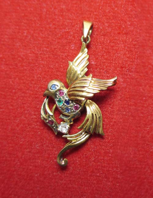จี้ เพชร รูปนกบิน งานทองk 2 สี เก่า สวย หายาก