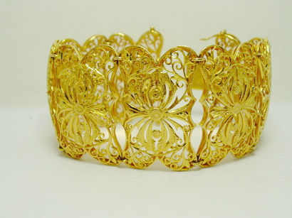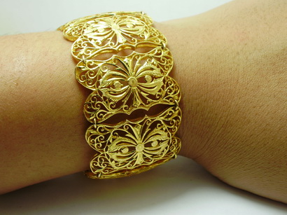 สร้อยข้อมือทอง 90% ฉลุลาย ผีเสื้อ หน้ากว้าง 3.50 ซม. เส้นรอบวง 5.5 ซม. งานเก่า