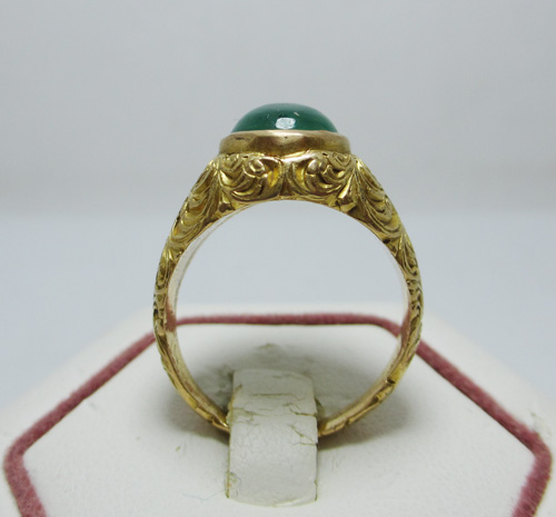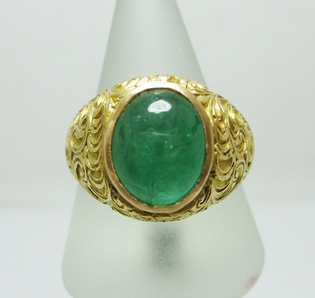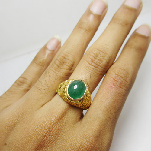 แหวนมรกต หลังเบี้ย 4.30 ct. เรือนทองคำ แกะลาย นน. 12.05 g