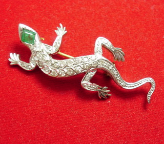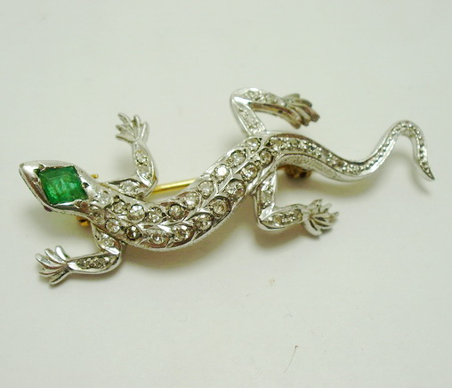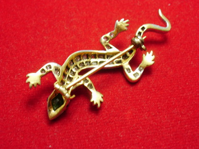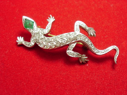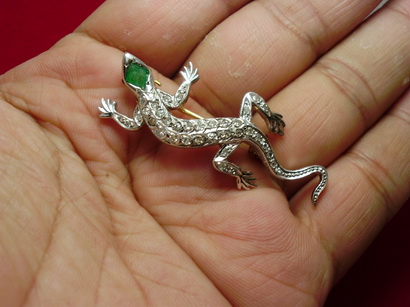 เข็มกลัด จิ้งจก งานทอง K มรกต ฝังเพชร นน. 6.26 g งานเก่า ลายแปลก