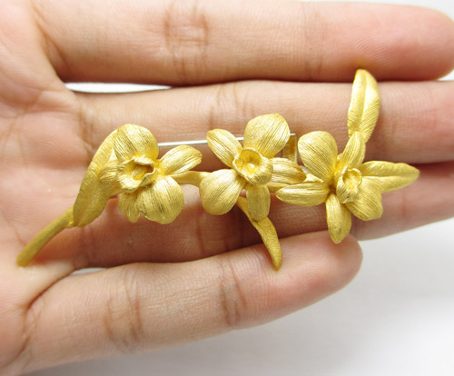 เข็มกลัด ทอง 99.99% Gold master ลาย Orchid ดอกกล้วยไม้ ขนาด 7.10 x 2.50 ซม.