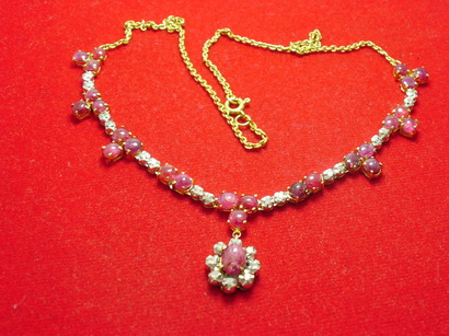 สร้อยคอ ทับทิมพม่า ฝังเเพชร นน.8.97 g งานเก่า