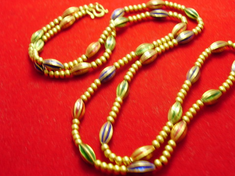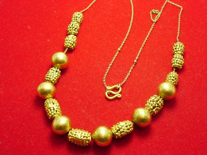 สร้อยคอ เม็ดทอง 100% ลายไข่ปลา ทองโบราณ งานเก่า หายาก