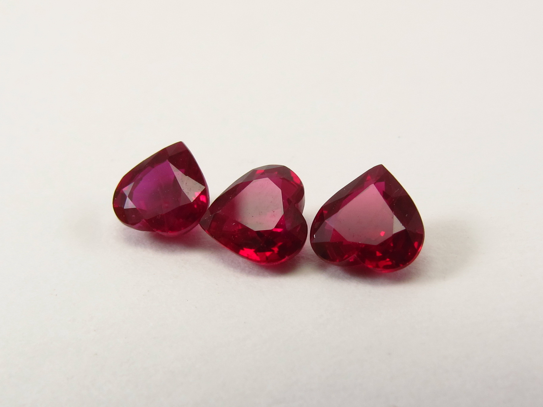 RB0003 พลอยทับทิมแดงพม่า ทรงหัวใจ 3 เม็ด 1.7 กะรัต