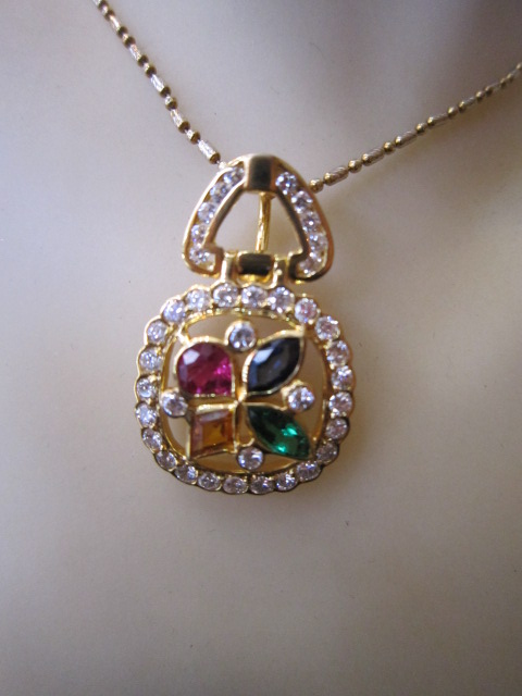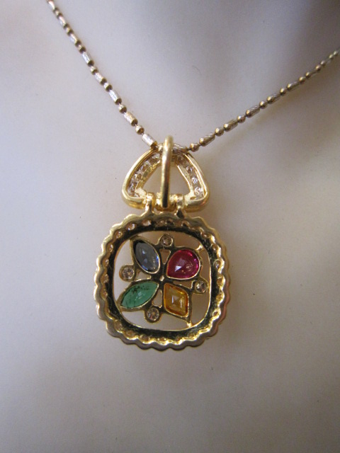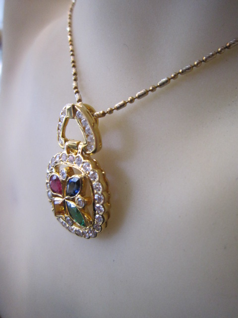 จี้พลอยสี่สี ทับทิม มรกต ไพลิน บุษราคัม ประดับเพชร
