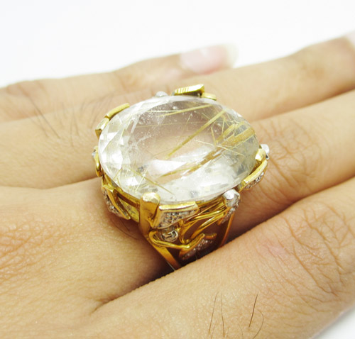 แหวนไหมทอง ฝังเพชรเหลี่ยม ลายลูกโลก นน.14.53 g